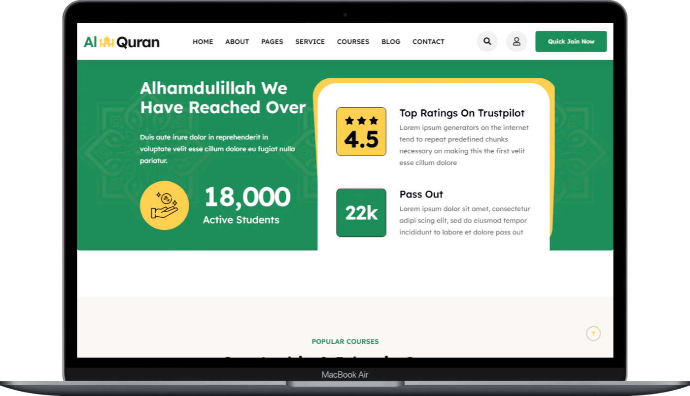 Our theme is not just a design, it’s a comprehensive solution for your educational and religious needs. Here’s why you should choose Alquran:
