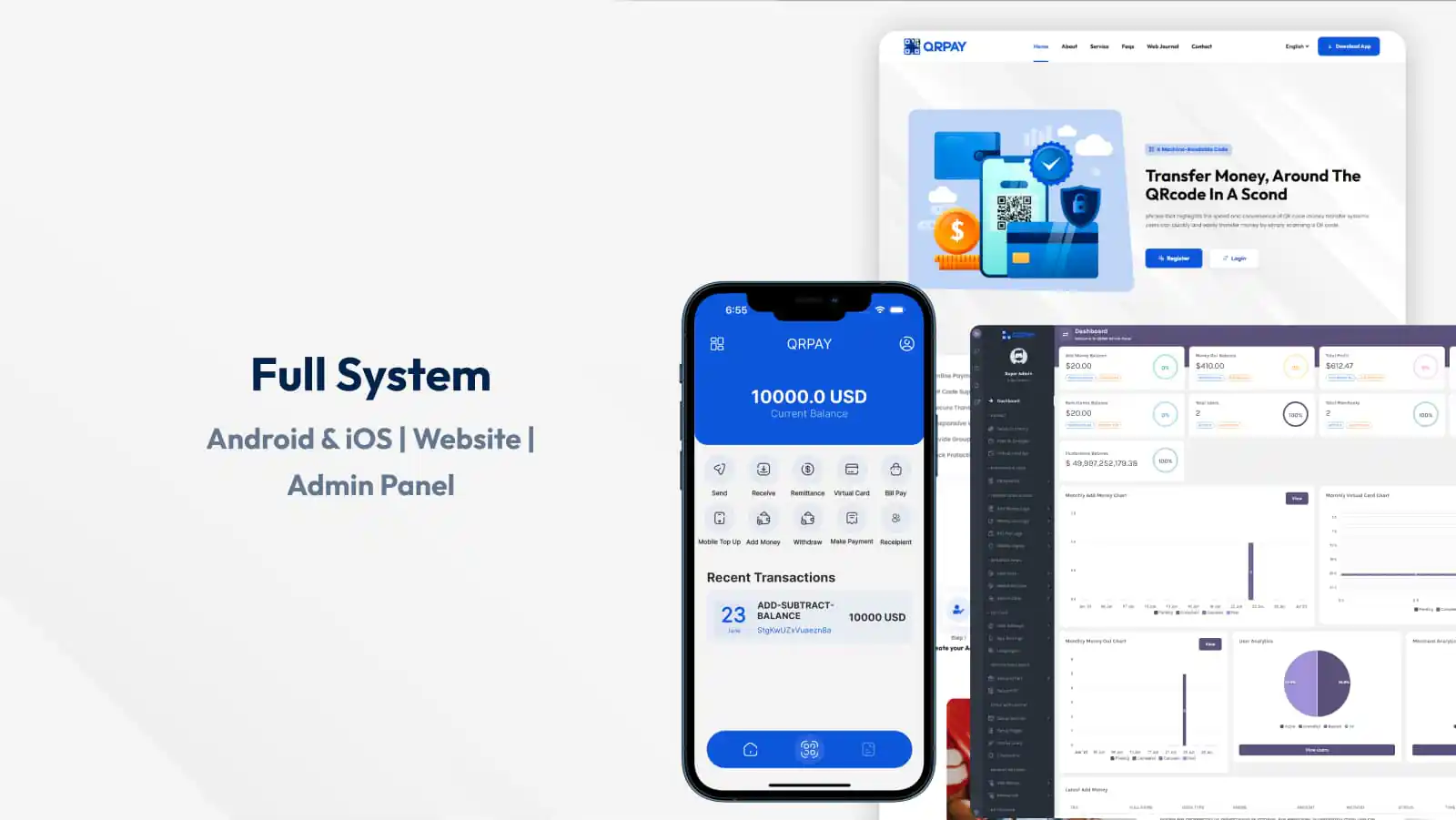 Introducing QRPay, the comprehensive solution for seamless money transfers via QR code, designed with cutting-edge technologies and frameworks. With its robust web backend powered by PHP, JavaScript, and Laravel, and its sleek mobile app powered by Flutter, Dart, and either Java/Kotlin or Objective-C/Swift, QRPay ensures smooth across-platform transactions.QRPay offers advanced features like QR code-based money transfers, send and receive functionalities, request money options, and merchant payments, catering to various financial needs. Users can easily add funds, pay merchants, and withdraw through agents. As a versatile remittance solution, QRPay supports bank transfers, wallet transactions, and cash pickups. Additional services include mobile top-ups, bill payments, and virtual cards issued by Stripe, Strowallet, Sudo Africa, and Flutterwave, providing users with extensive financial capabilities. Equipped with user, agent, and merchant panels, QRPay streamlines operations and enhances the user experience. Its comprehensive payment system includes automated integrations for PayPal, Stripe, Flutterwave, Coingate, Tatum, Perfect Money, Pagadito, Razorpay, SSLCommerz, and Flutterwave-Bank transfer, alongside manual payment gateways. A robust verification center that incorporates email, KYC, and 2FA prioritizes security. Additionally, live support, a ticketing system, and push notifications ensure responsive customer assistance and smooth web and app content management. With its budget-friendly approach, QRPay empowers businesses to excel in the competitive financial landscape. Embrace QRPay to elevate your operations and unlock new opportunities in the dynamic world of digital payments.