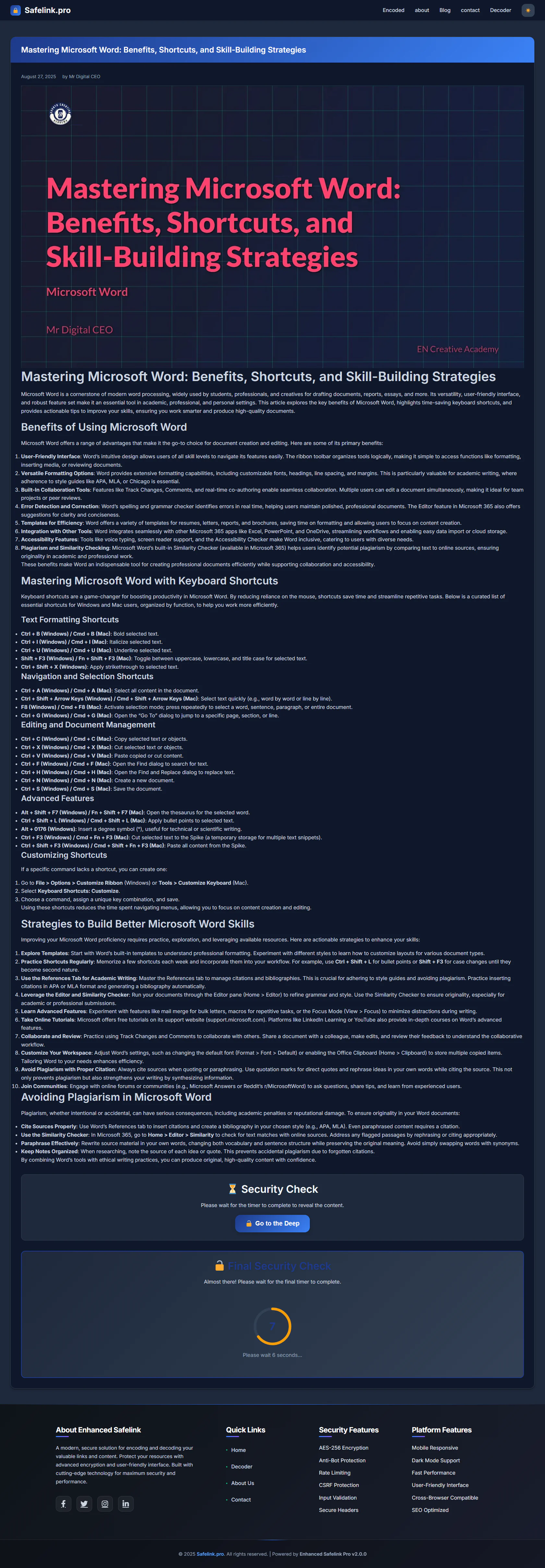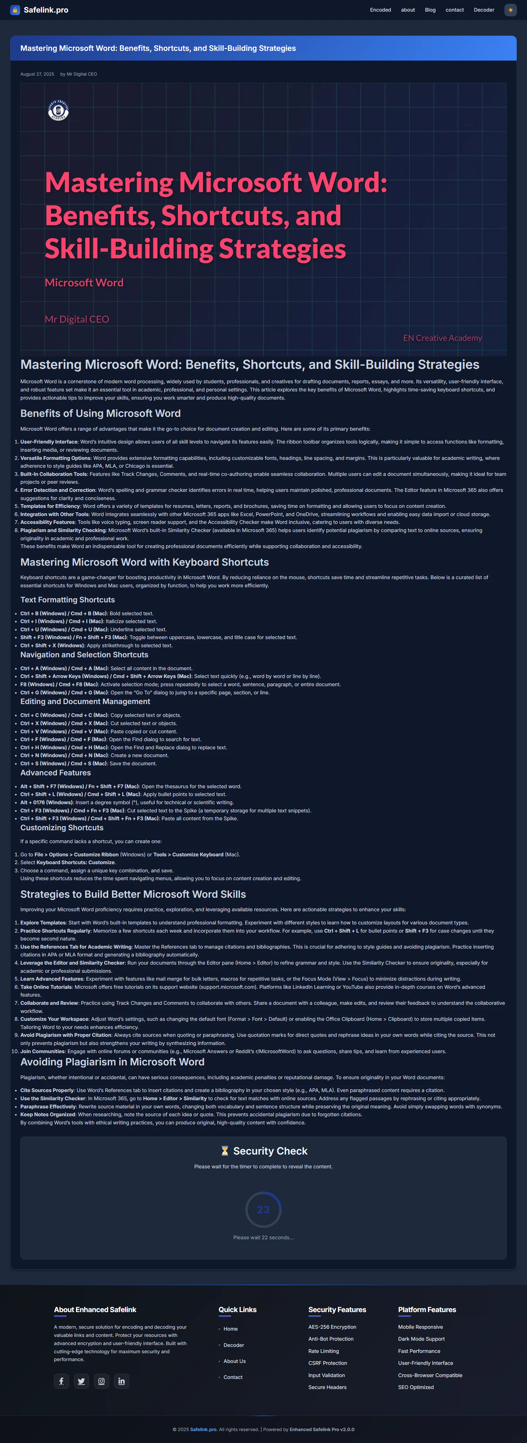 Safelink Pro provides a professional, dark-mode responsive design, enhanced user experience, and optimized performance across all devices and browsers. It includes features like multiple encryption options, secure key derivation, and CSRF protection to ensure your encoded content stays safe from unauthorized access.