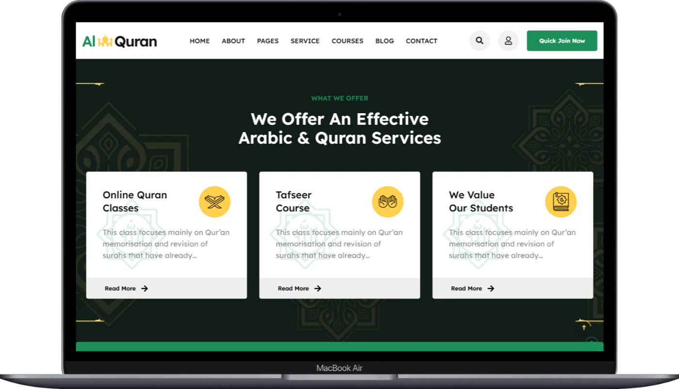 Our theme is not just a design, it’s a comprehensive solution for your educational and religious needs. Here’s why you should choose Alquran: