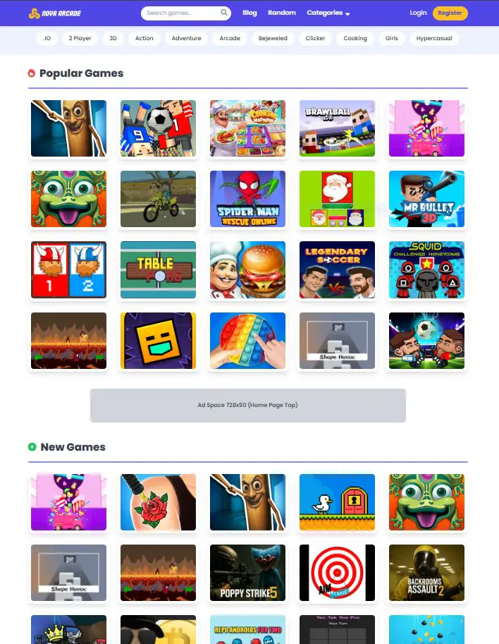 Nova Arcade is a lightweight yet powerful standalone HTML5 Game Portal CMS built with modern PHP (7.4+) and Tailwind CSS. It enables you to launch a fully functional and monetizable game website within minutes โ no advanced coding skills required.