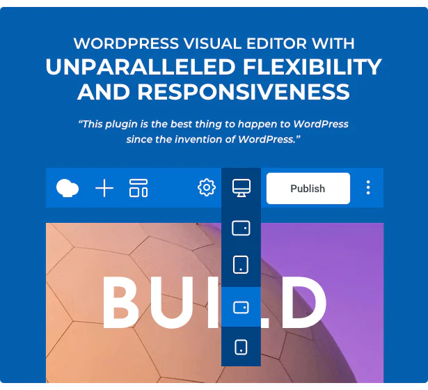 Not only that, WPBakery Page Builder gives you full control over responsiveness. Create responsive websites automatically or adjust preferences you need to ensure your WordPress website looks perfect on mobile or tablet. WPBakery Page Builder has everything it takes to create a responsive website. Save your money on purchasing different devices with WPBakery Page Builder Responsive Preview available out of the box.